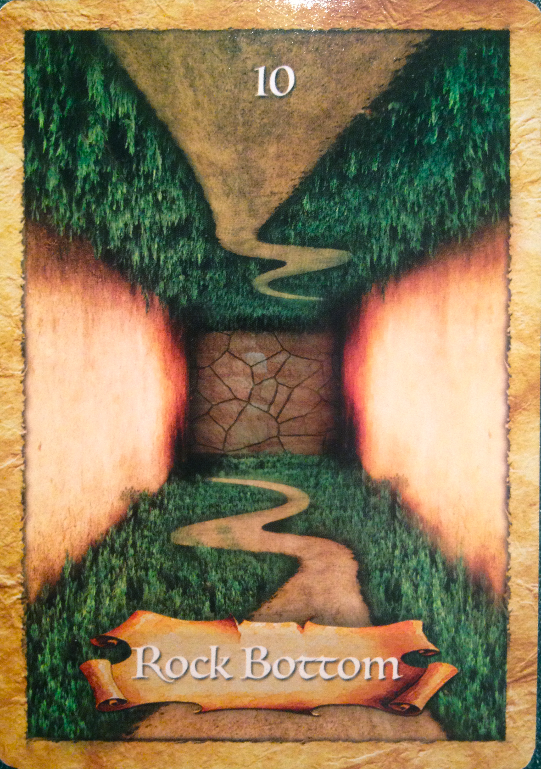 The only way out is through surrender. Accept things as they are, and admit that you have no idea what to do next. If you wait in that heartfelt moment of release, then a stairway will appear, like magic, and all manner of synchronicities will show you the way to higher ground. The Rock Bottom card is a sign that a miracle is about to occur, but only if you let go completely.”*