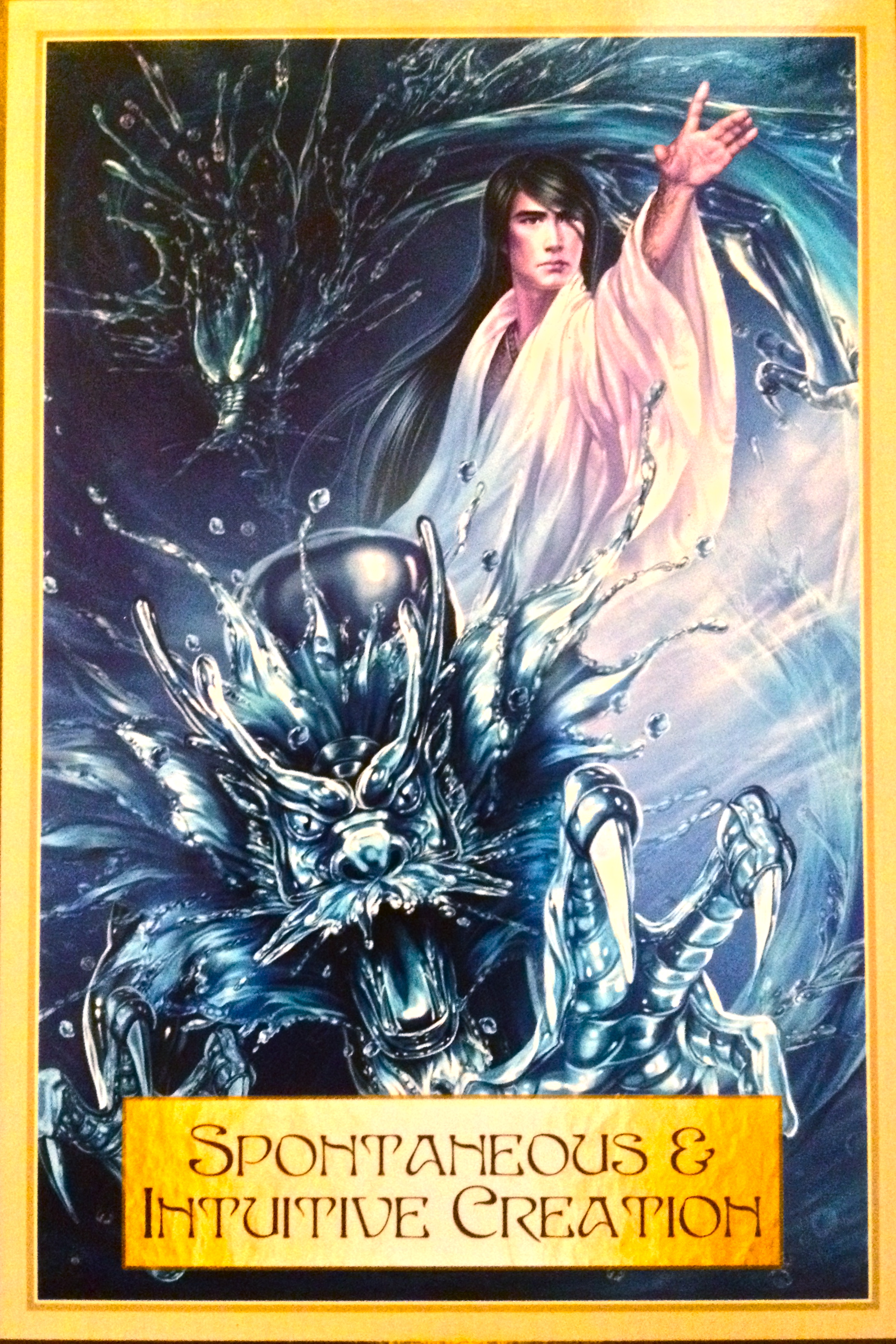 “You have drawn this card today to remind you that the life force within you is the most creative force on earth. At the heart of every living thing the same creative force and potential exists. You are part of one universal soul and are energetically connected to the eternal light of creation. Close our eyes for a moment and feel the creative fore within ou. Feel yourself in communion with the entire universe. You hold the potential and power to spontaneously create by tapping into the universal energy field of endless possibility. But you must first feel this power within you and love and trust it. You can create whatever it is you want provided you mind, heart and soul agree and are in alignment. Pay particular attention to impulses and ideas that come to you seemingly from nowhere. Your intention can be your greatest asset. Trust all that you sense and feel and be guided by your instincts. Thoughts and ideas are the seeds of every creation and spontaneous creation begins by the planting of a seed.