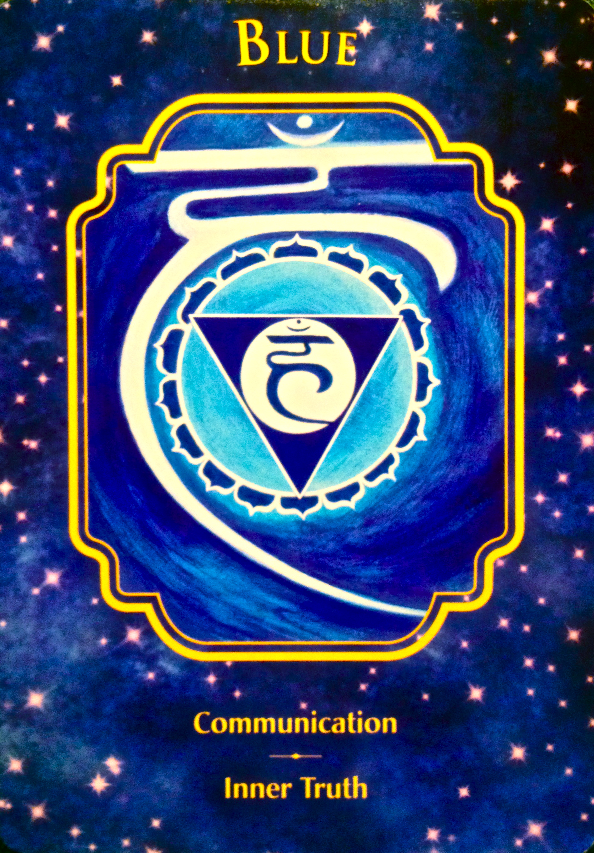 “This card asks you to empower yourself by seeking your inner truth, emotional calmness, or creative expression. You need to communicate who you are. It is time to accept your (and others’) originality and uniqueness. Do not worry how people might view you. Jump into your creative expression. You do not need anyone’s approval. If you seek it, your inner truth is being stifled. A clue that this imbalance exists is feeling compelled to prove your views are right. Another clue is the inability to share your thoughts and opinions, and harboring feelings of inadequacy. Blue is the colour of the Throat Chakra, representing communication.