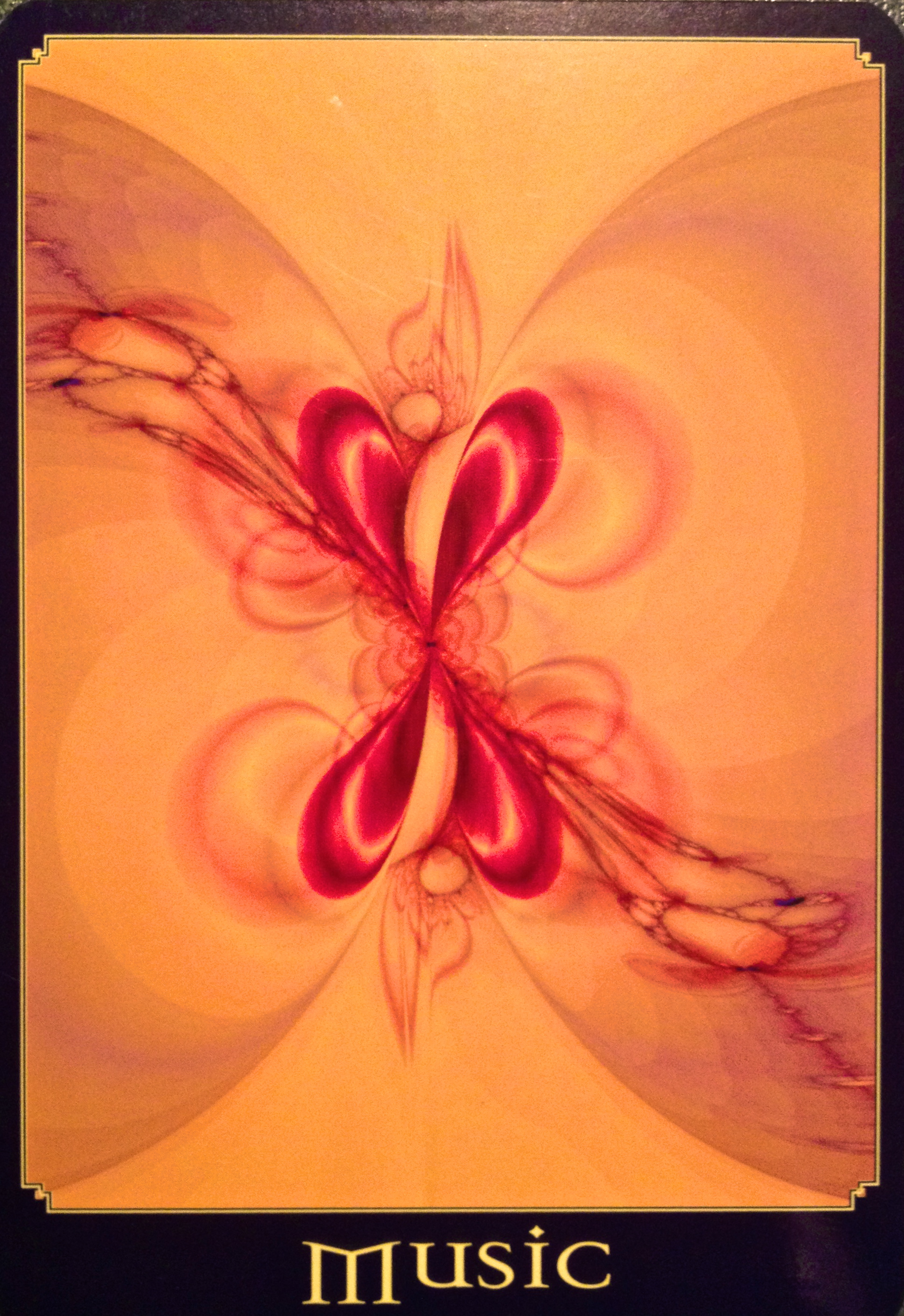 Writing a blog about the healing qualities of music is actually challenging! This being a subject that many books have been written about, and for a very good reason. There is really nothing quite as satisfying, healing, exhilarating, humbling, or more nostalgic than music. Music is the quickest fix there is, even in today’s society. It can lift you up, soaring like nothing else, and it can bring you to tears in seconds. It can calm babies, create new neural pathways (basically it makes you smarter!) and raises your vibration almost instantly. Music is a miracle unto itself. Note the hearts in the photo on the card, music is love in sound vibration!