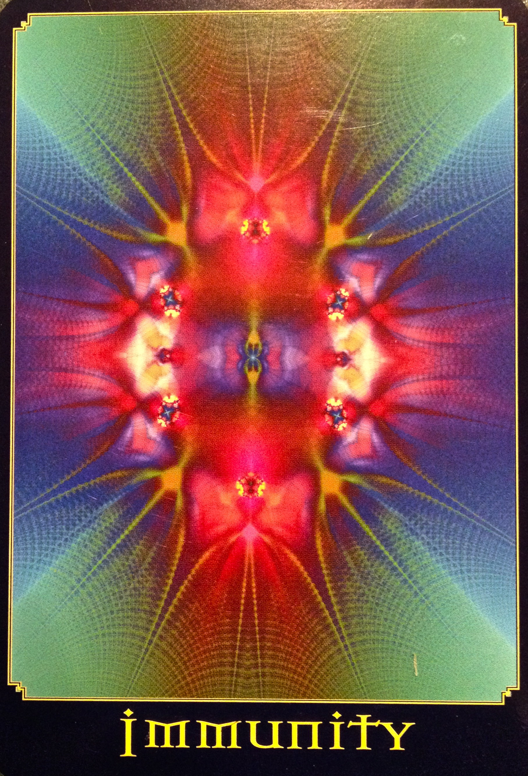 Immunity: “The Immunity card comes when we are feeling as though we are under attack. You may be experiencing disagreements or arguments. Perhaps you are feeling belittled, unworthy, or misunderstood. Whatever the case may be, there is a feeling of the need to protect yourself. Sometimes, these feeling may not even involve an individual person, but are perceived from the world at large.