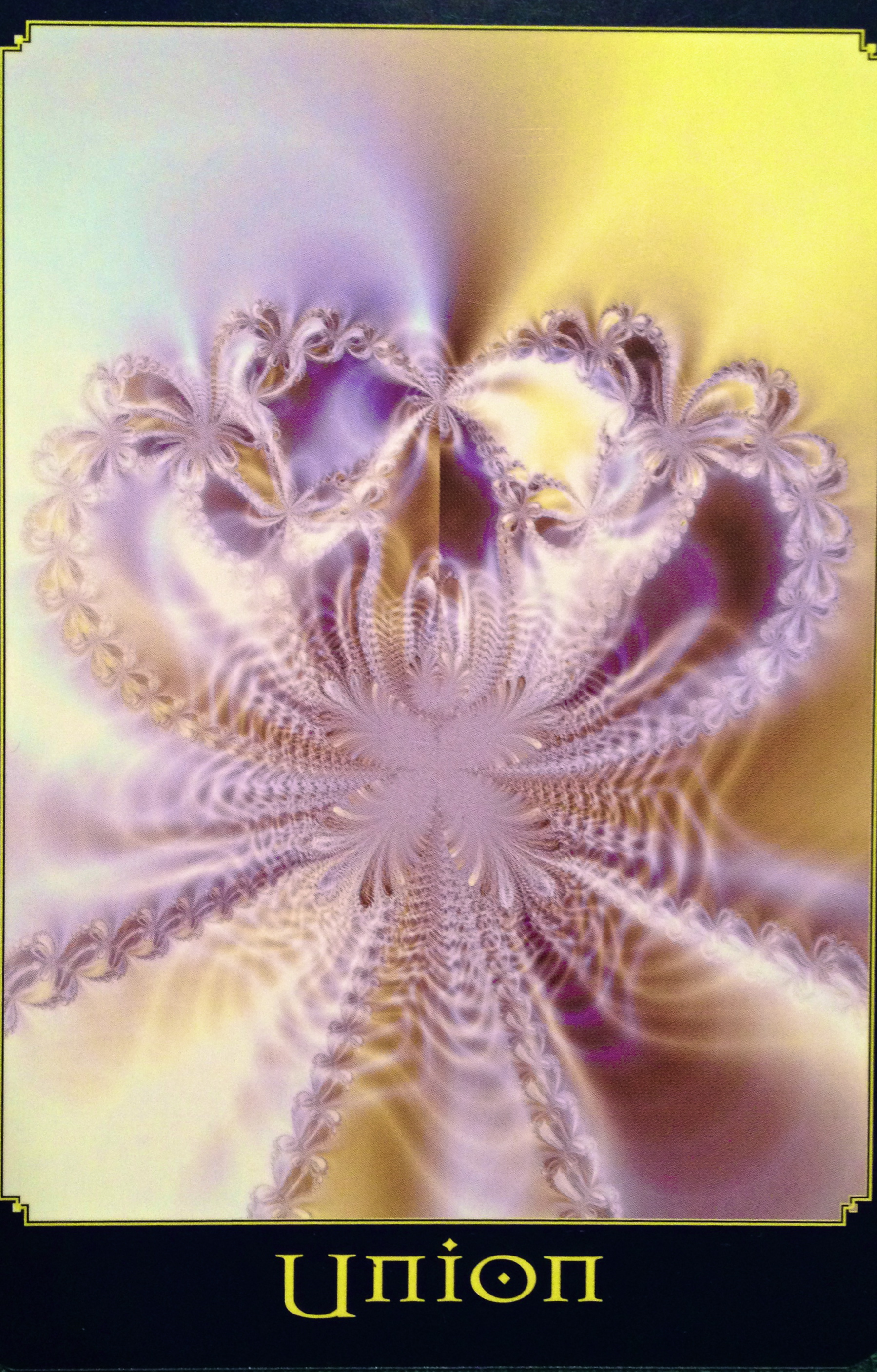 This card can represent the beginning of a new relationship, or one that is about to start. Most often, the Union card represents intimate relationships. However, it can also point to other types of partnerships such as business partners, very close friendships. or even room-mates. In any case, the Union card communicates the predestined convergence and soul connection of two individuals. Whoever the person is that is in your life right now, or whoever it is that is coming into your life, is of great significance as far as your soul lessons are concerned. This is a beautiful opportunity for personal growth and conscious expansion of your heart center.