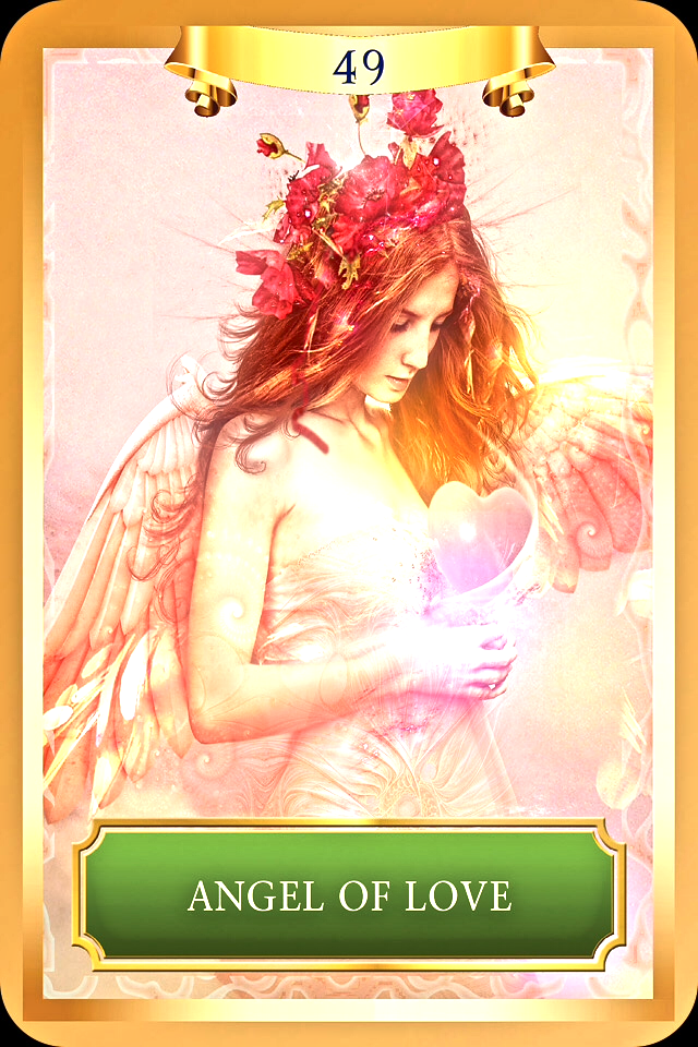 In this position, the angel can also refer to an old separation, if the longing remains alive in one partner’s heart. If you find yourself unable to let go, this loving angel is telling you it is time to release any toxic or unrequited attachment you may be holding on to. The Universe is waiting for you to free your heart and open your life to the fully present and honoring love that you so rightly deserve. So look in the mirror and see the Angel Of Love there with you. Know that you are worthy of this tender emotion – from yourself and others.