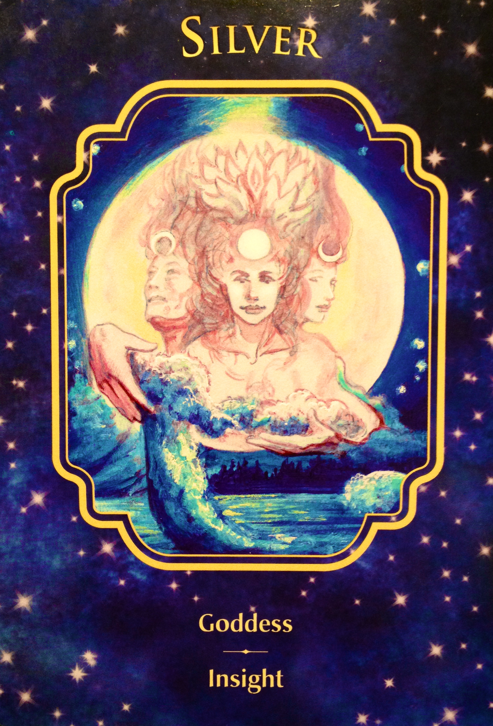 Silver ~ Goddess Insight: “When this card shows up, it is time to tap into your most mysterious, magical self. This part of you is powerful. It holds great wisdom. Seek answers within.