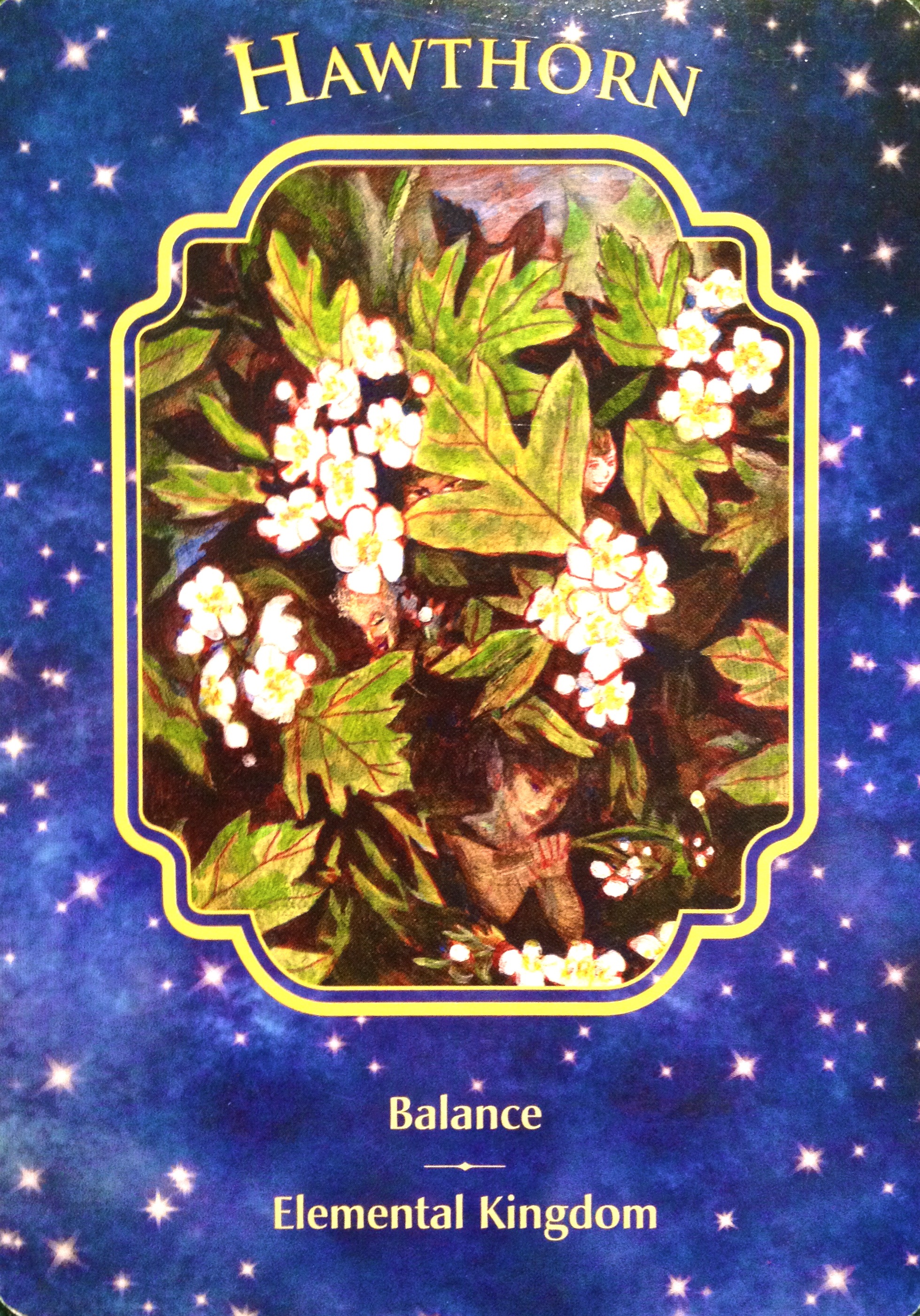 “This card is asking you to open to the magic surrounding you by taking time to feel gratitude. Hawthorn is an ancient tree, sacred to the elemental kingdom. Also known as a fairy tree or tree of protection, it is an ally for healing. Acknowledge the blessings in your life. Begin to cultivate a relationship with the fairies (sometimes called the good folk, fae, or Sidhe). Invoke their blessings in ritual and energy work. Open up your healing abilities. Respect these abilities and use them to help others.