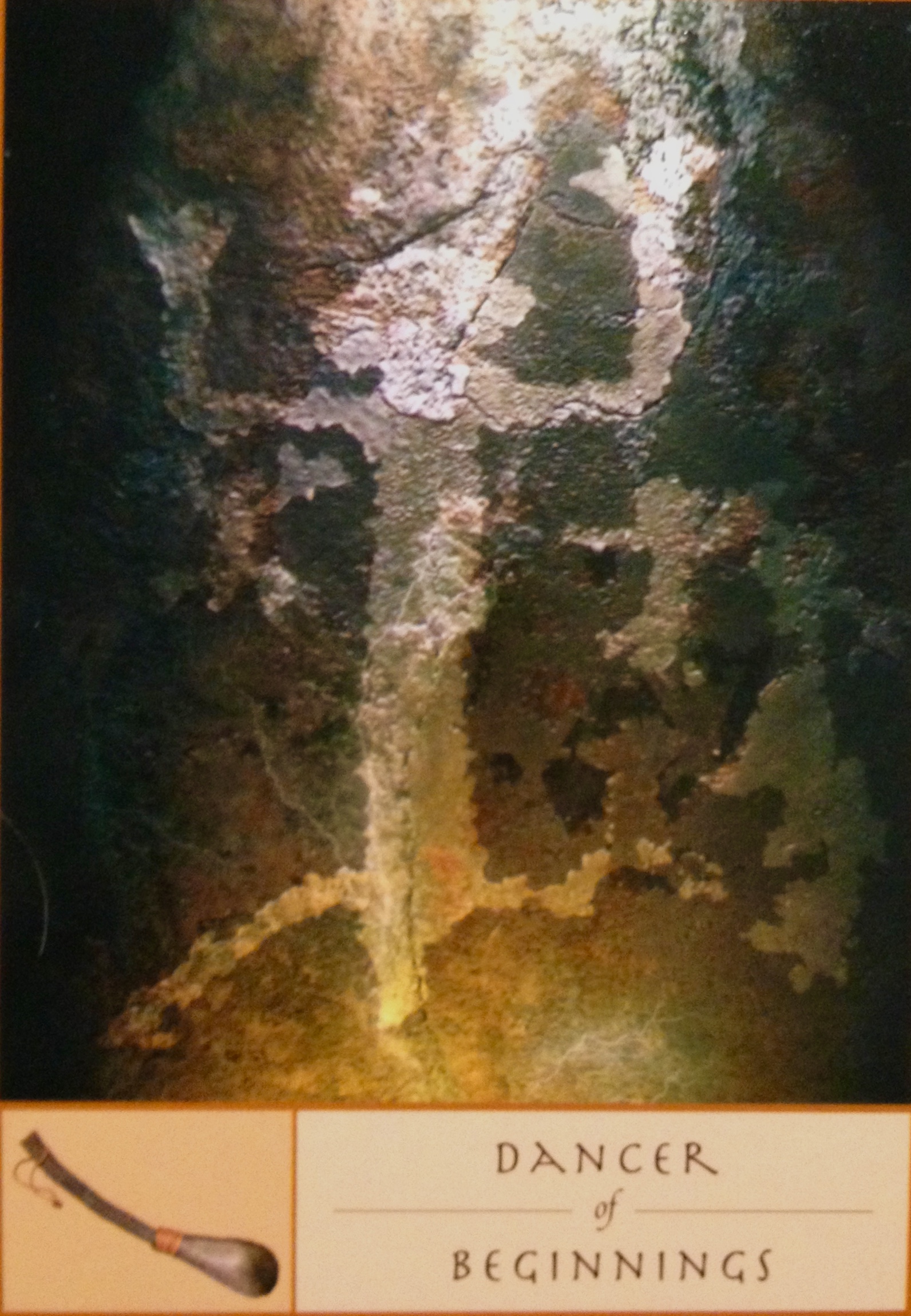 The Dancer Of Beginnings: “This dancer raises his or her hands as if in greeting, embracing the moment of beginning – the point of transformation from the seed of intention to the fullness of action. The Dancer Of Beginnings represents a transpersonal energy that bursts out of the shadows, infusing everything that surrounds it with the potential of becoming more than it is. The dancer can refresh our vision of ourselves and of our lives, helping us to see beginnings where perhaps we once saw endings – and to breathe new life and possibility even into the familiar and the routine.”