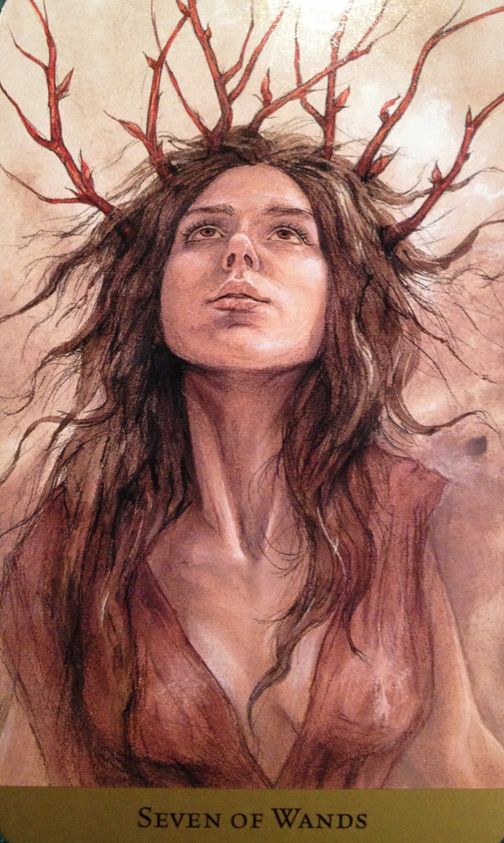 Divinatory Meaning: “There are times when you are certain of what you want to do, what you feel you must do. When you hesitate, though, uncertainty creeps in. Others question your decisions. You question yourself. The clarity you had is attacked and weakened. The energy of the initial decision still fills our soul, but now it has no outlet and becomes increasingly painful. The Seven Of Wands shows this moment but also the next… when you are reminded of your initial quest. The crust of paralysis breaks away, freeing you to do what you know you must. It was in you all along, buried but still alive.