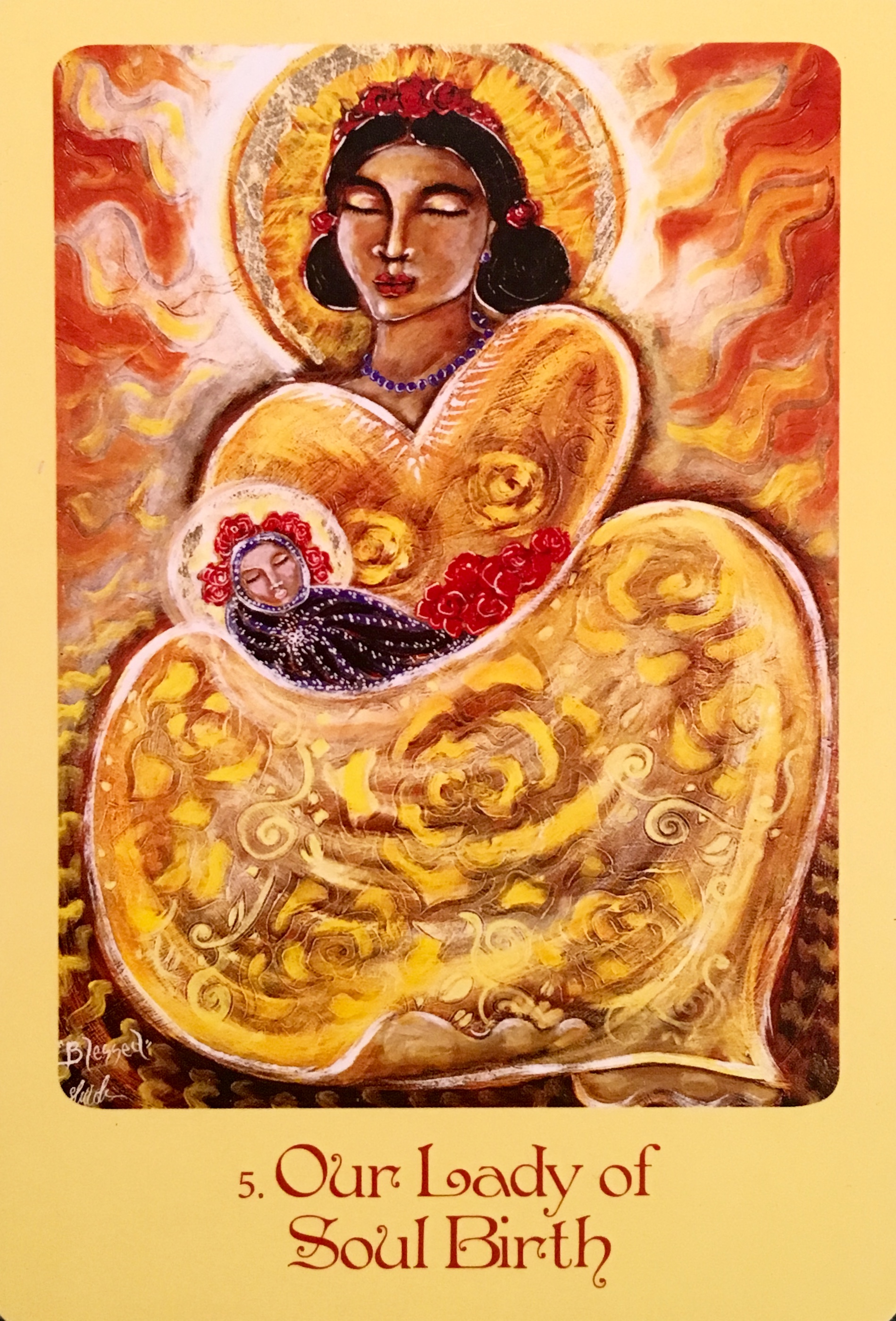 Daily Angel Oracle Card: Our Lady Of Soul Birth, from the Mother Mary Oracle, by Alana Fairchild, artwork by Shiloh Sophia McCloud