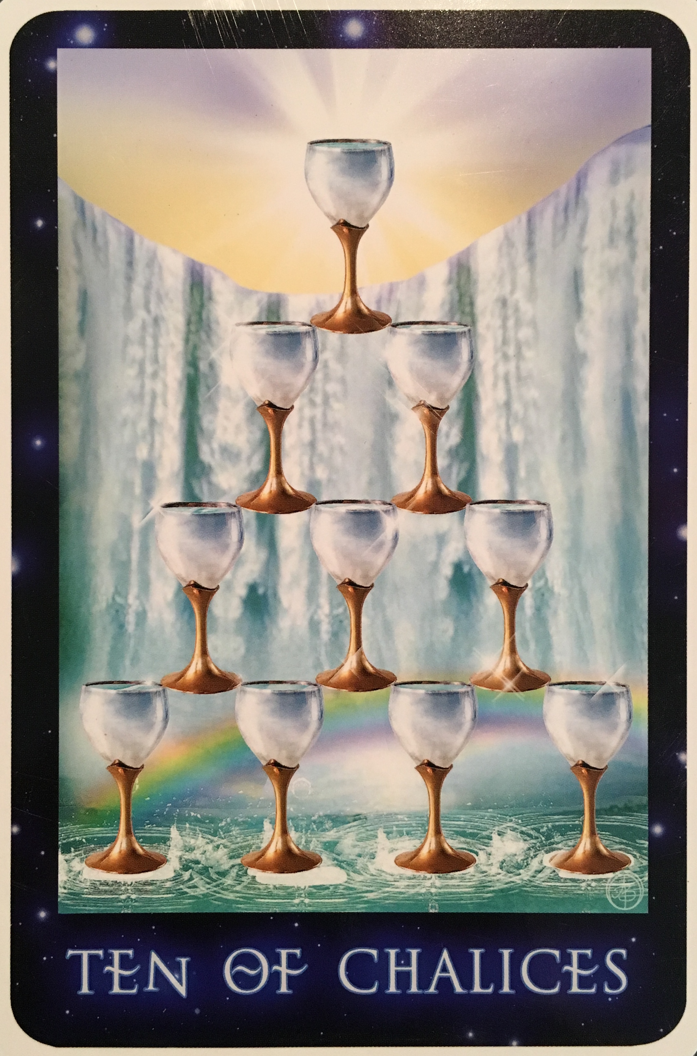 Ten Of Chalices: “How much better can it get than the Ten Of Chalices? Like the endless flow of Niagara Falls, the emotional waters of your being flow unrestrained and free. Nothing is held back; nothing is hidden. All is optimism, joy and freedom to be and to feel, celebrating the wonder of the human experience – the vastness of our extraordinary capacity to feel emotion in all its diversity.