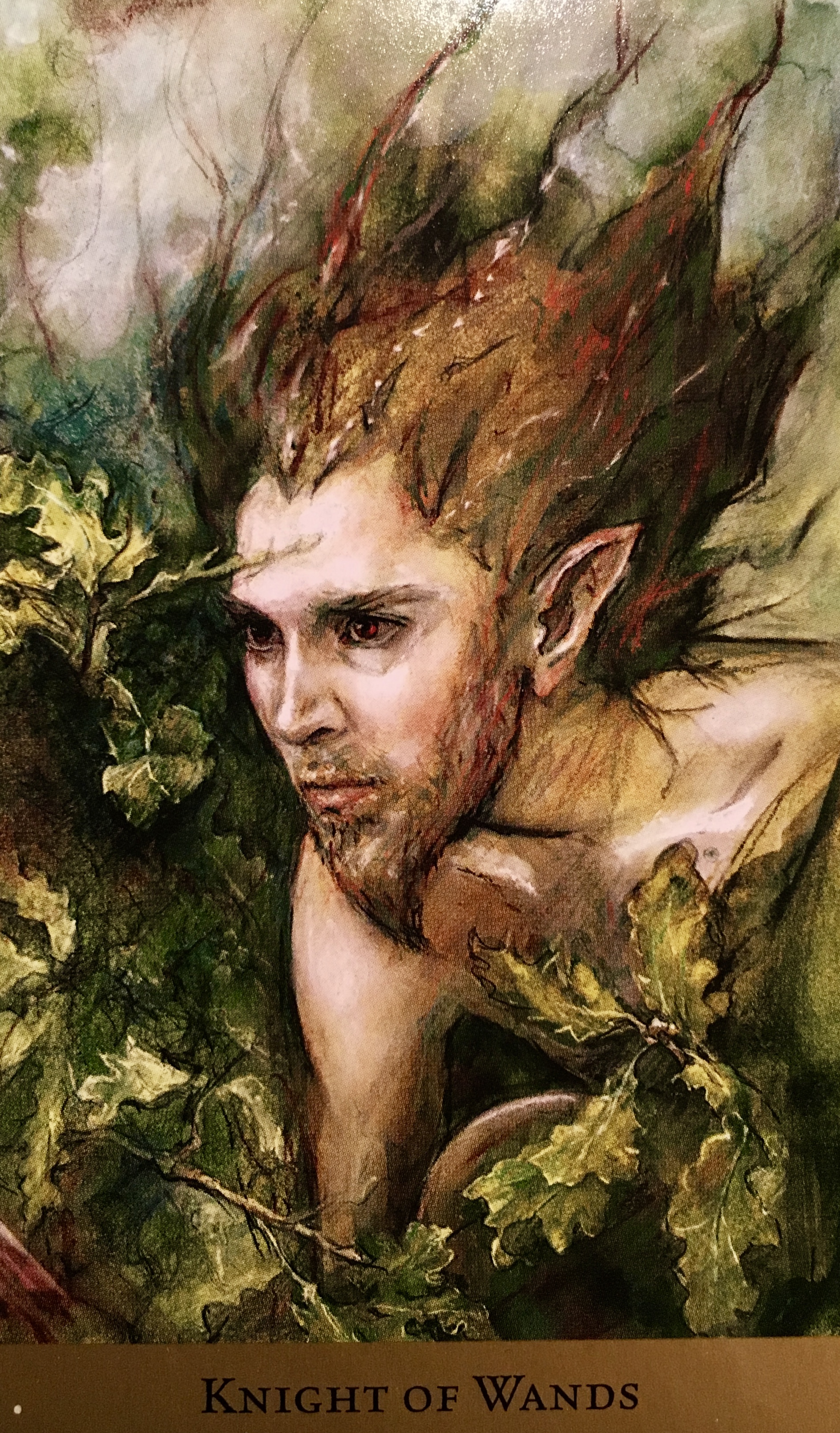 Knight Of Wands: “This is the still moment before action. Hidden in the underbrush, this hunter is all but invisible. The angels of his body and the richness of his colouring camouflage him from all but the keenest of eyes. Holding still is the most difficult thing for him to do. A closer look reveals that his every cell is in motion, vibrating with energy so fast that he seems motionless. Humans would assume that, behind intently focused eyes, his mind is moving through thousands of possibilities, assessing and predicting what will happen next, but they would be wrong.
