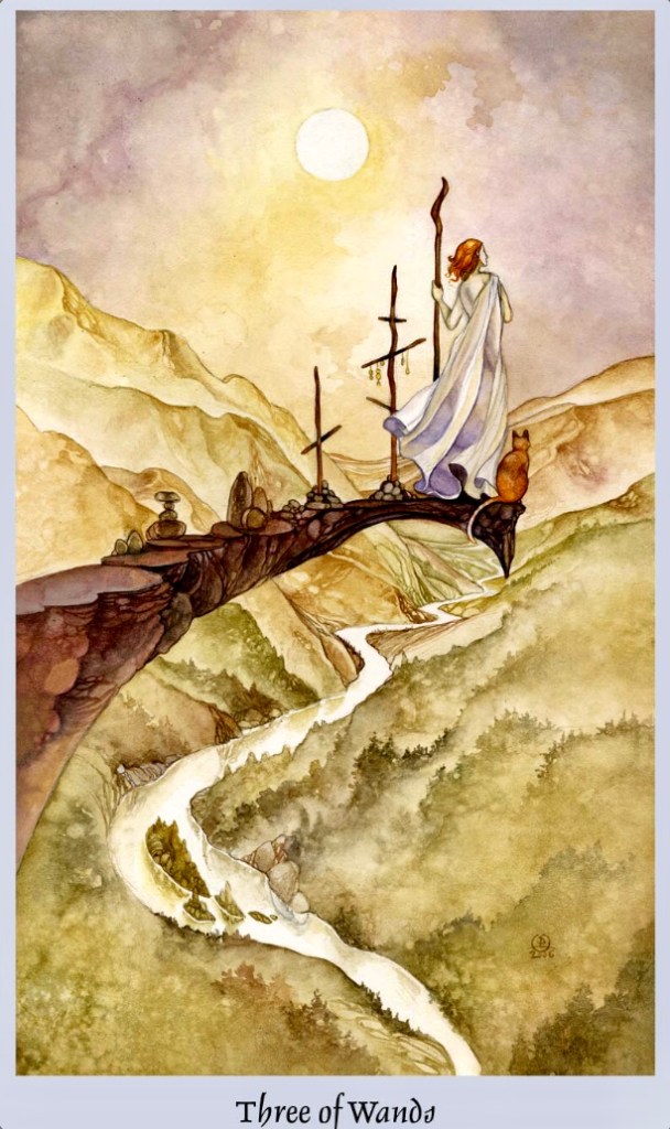 Daily Angel Oracle Card: Three Of Wands, from the Shadowscapes Tarot Card deck, by Stephanie Pui-Mun Law and Barbara Moore