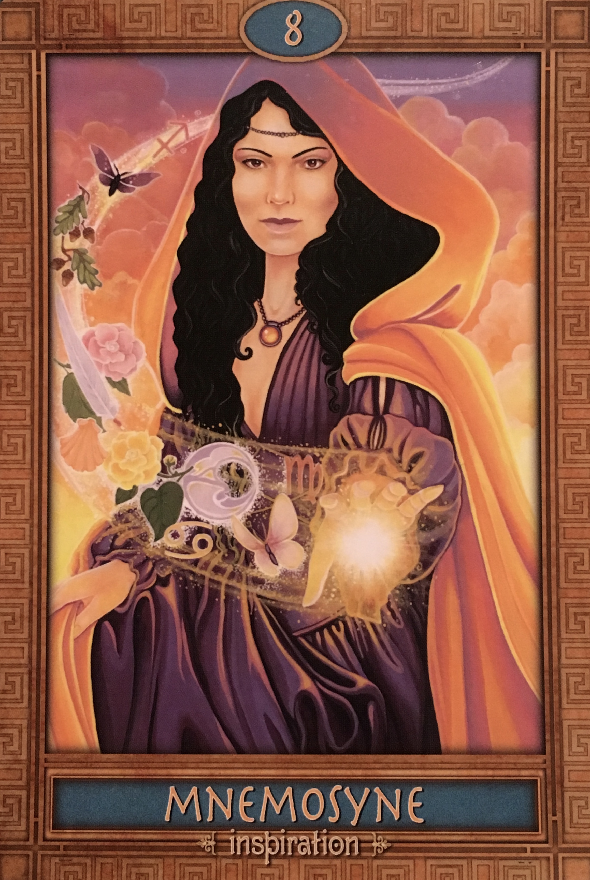 Daily Angel Oracle Card: Mnemosyne ~ Inspiration, from the Mythic Oracle Card deck, by Carisa Mellado, artwork by Michele-Lee Phelan