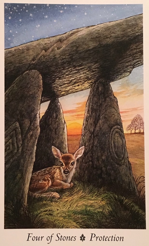 Daily Angel Oracle Card: Four of Stones, from the Wild Wood Tarot, by Mark Ryan and John Matthews, Illustrated by Will Worthington