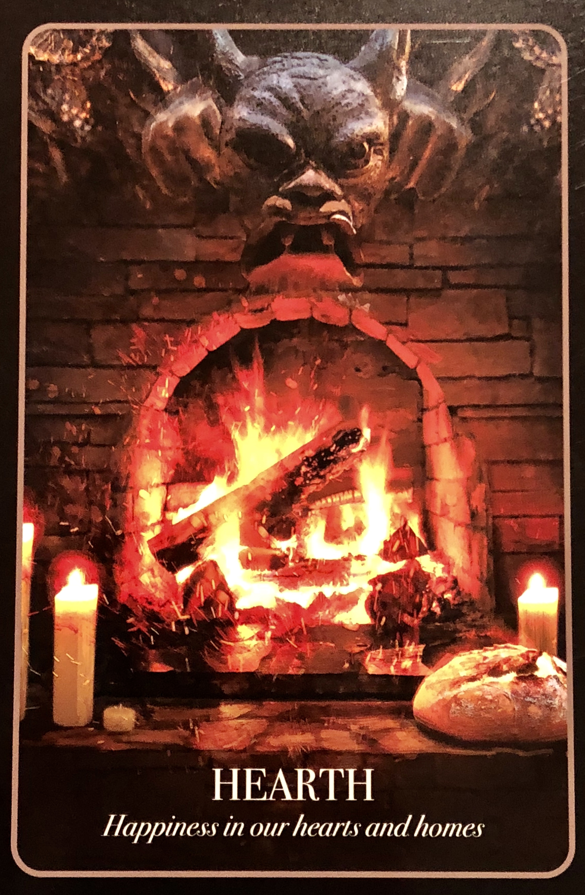 Should the Hearth card appear in your divination, you are beings asked to look to your idea of what home and family is for you. Take the time to build up your ‘love’ fire and have it burning brightly. Make your relationships a priority. If there is conflict within your home and family, it is time to take concrete steps to address the issue for good. If you or a member of your family is away from home due to travel or work, know that protection is being given.”*