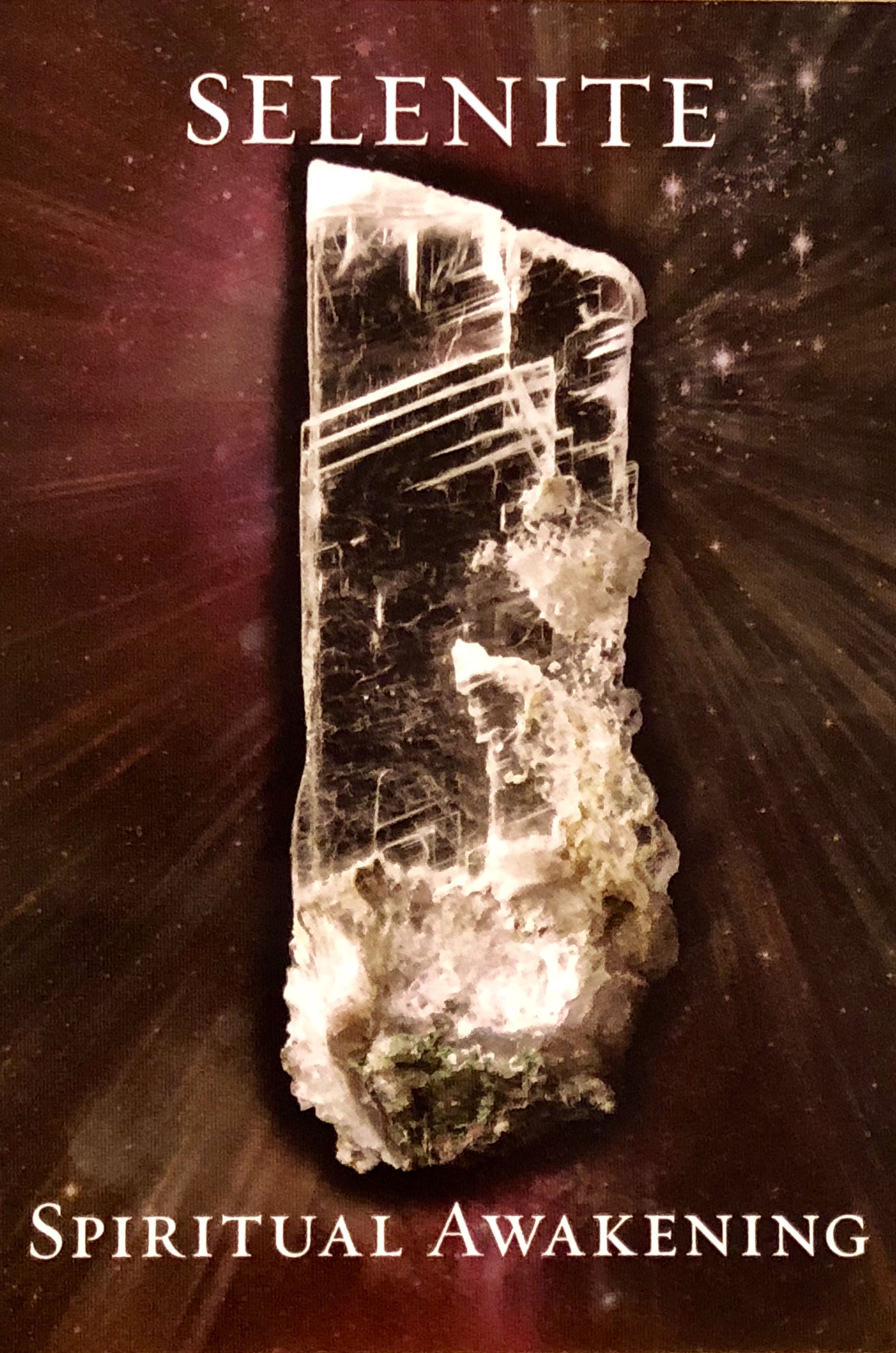 Selenite Crystal Medicine: “Selenite is a powerful light-saber of universal energy. This potent crystal sends energy into the crown chakra, bathing the body in the loving healing energy of the cosmos, and clearing away the old and making way for new vibrant energy and a deeper spiritual connection. This powerful crystal assists in opening the crown chakra as it draws down the divine light of the cosmos into the top of the head. It acts like a lightning bolt of universal energy. Due to its structure, it allows energy to flow powerfully like a strike of lightning. It is a perfect crystal for cleaning the energy field and for awakening deeply to your spiritual essence. Being in the presence of this magnificent crystal allows for a direct link and connection to the cosmos and spiritual wisdom.”