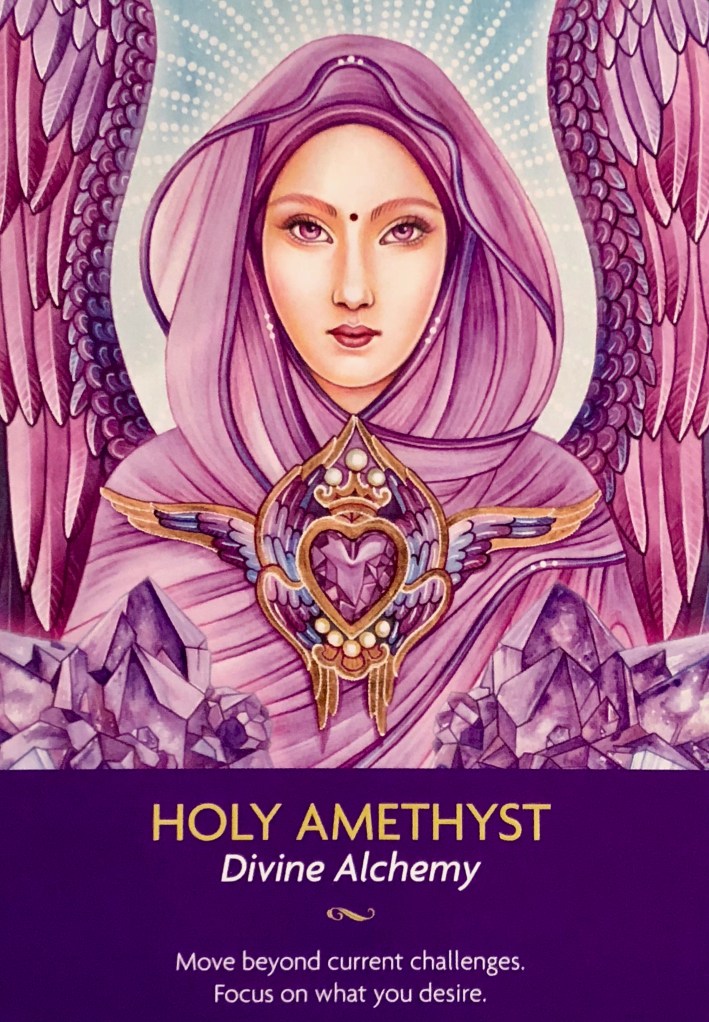 Daily Angel Oracle Card: Holy Amethyst, from the Keepers Of The Light Oracle Card deck, by Kyle Gray, artwork by Lily Moses