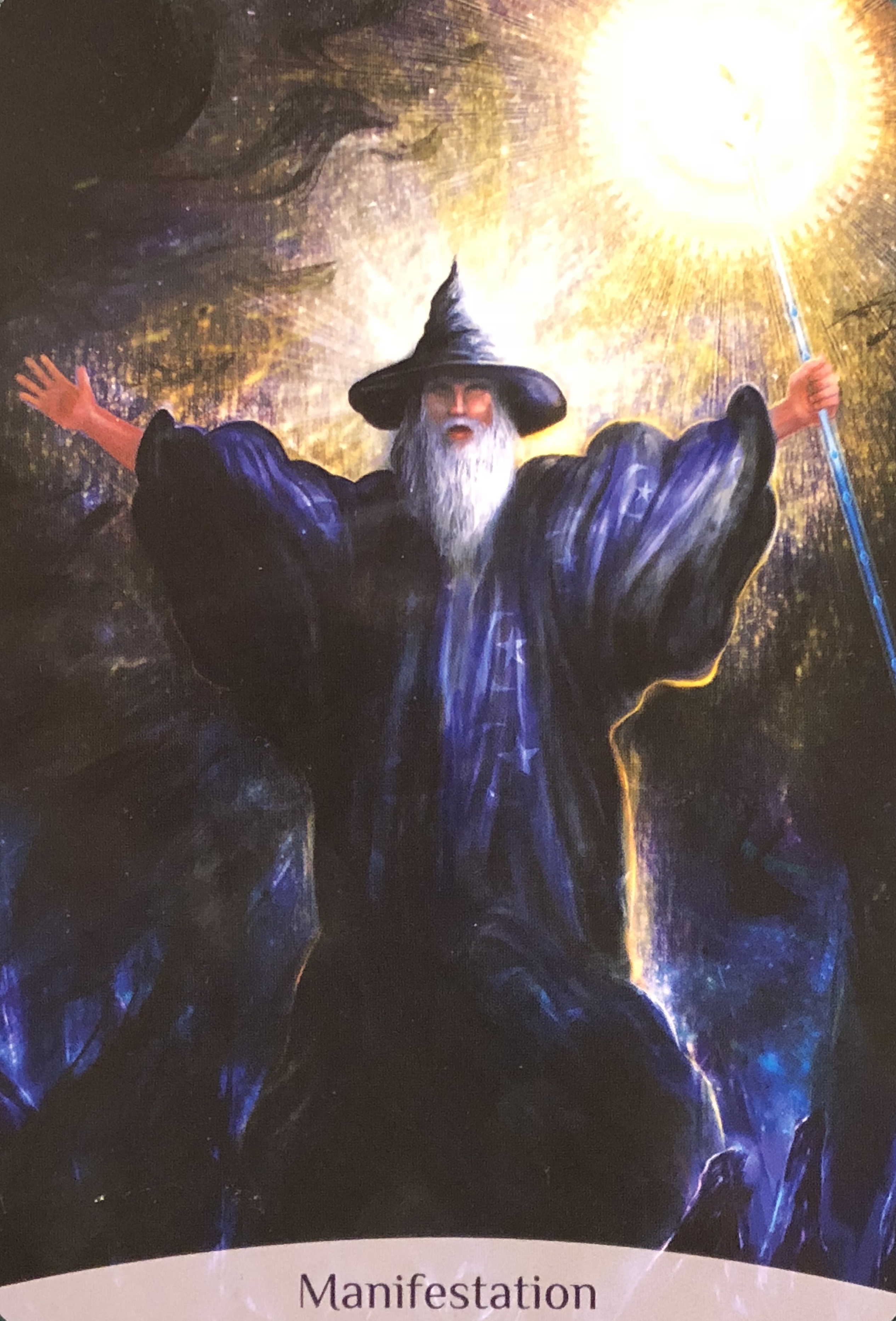 “The wizard is a symbol of magic and manifestation whose power is activated harmoniously through the mind and the heart. Bridging humanity with the world of spirit, the wizard borrows the power of the universe to direct and enhance energy to a specific task, healing or outcome.