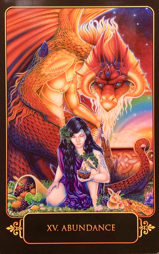 Meaning: “What is abundance? Abundance is defied as a state of plenty. When the Abundance card appears, it signifies a feeling of abundance, of appreciation, that opens you to the abundance that surrounds you. In turn, this feeling gives rise to an abundance consciousness. A person with an abundance consciousness is one who is always hopeful, seeks a fair and equal exchange of energy, and sees potential and opportunity in all experiences.