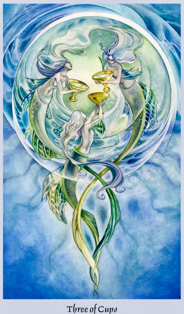 Three Of Cups: “There is a song that dwells at the ocean’s floor. It lurks in the chasms. It hides in the voices of whales and the squeals of dolphins. It haunts the reefs and caverns. And then, once in a great while, like an air bubble that has been gathering under the crust, it bursts forth in an unstoppable swell to rise towards the surface.