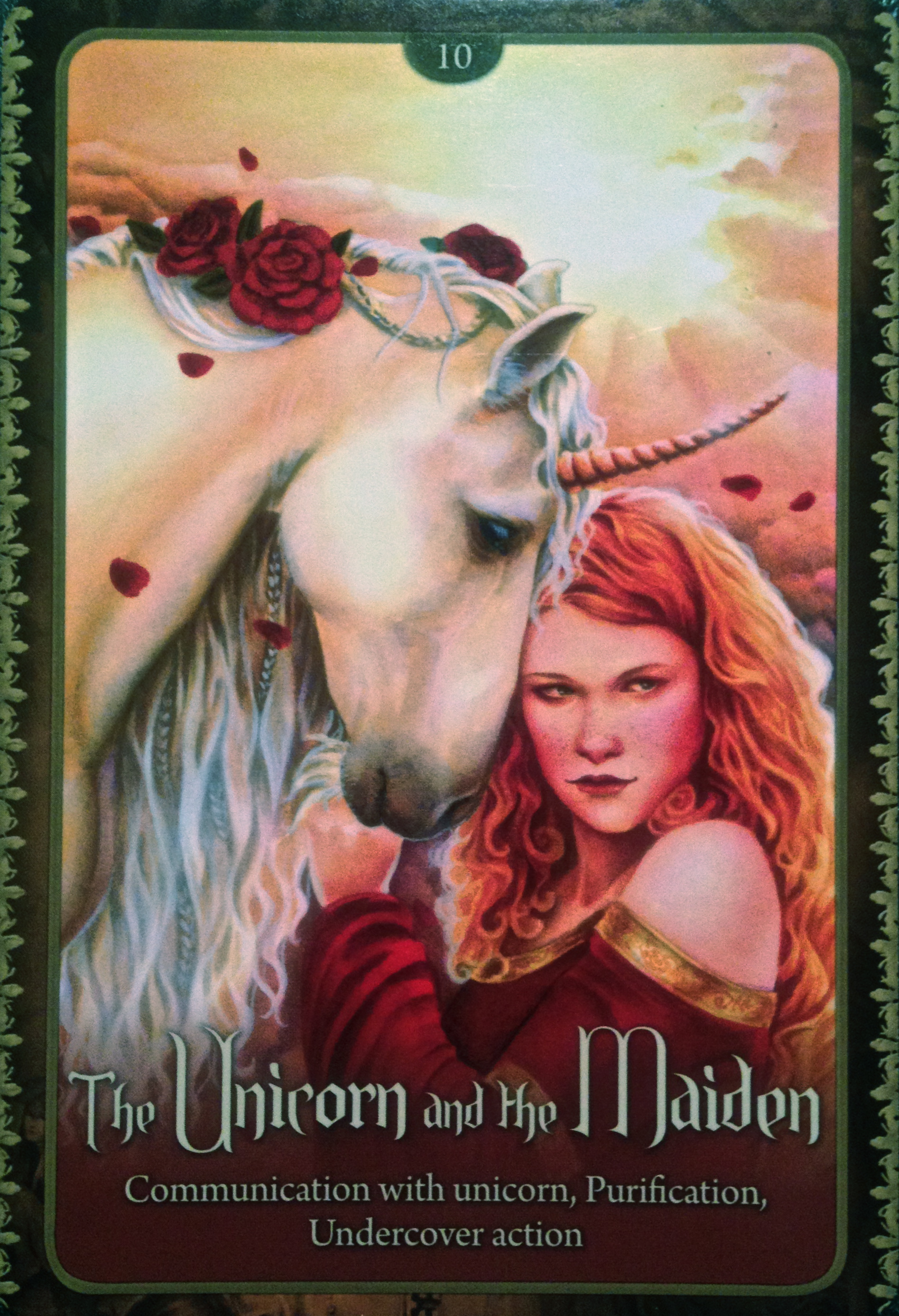 If the Unicorn and the Maiden appear to your in a reading, you are being reconnected with your magical self, with your own maiden, your own pure, wild qualities. Gentle and free, fierce and beloved – as is the magical creature, the beloved Unicorn.”*