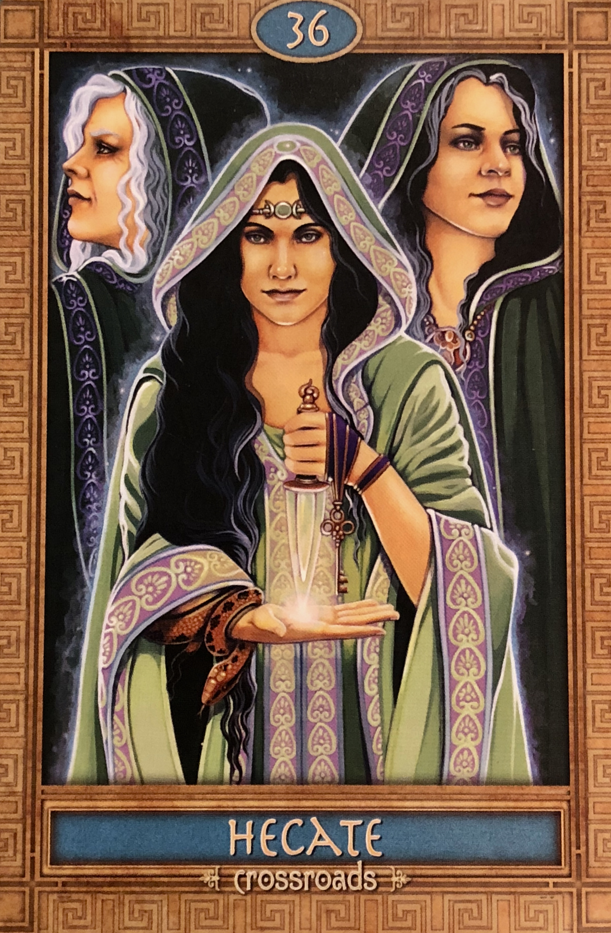 The Message From Hecate: “If you have drawn this card, a major, life changing crossroads lies before you. Hecate beckons you to choose a direction. You must make a decision. Change is inevitable, but the direction of change is completely up to you. Hecate is calling you to the untamed and wild areas of life. You must follow this deepest of calls. You know the decision you must make – it is probably a terrifying decision, yet it is one that will take you to your highest calling. Do not be afraid of what you feel deep inside. Follow that inner wisdom and let it lead you to your destiny.”*