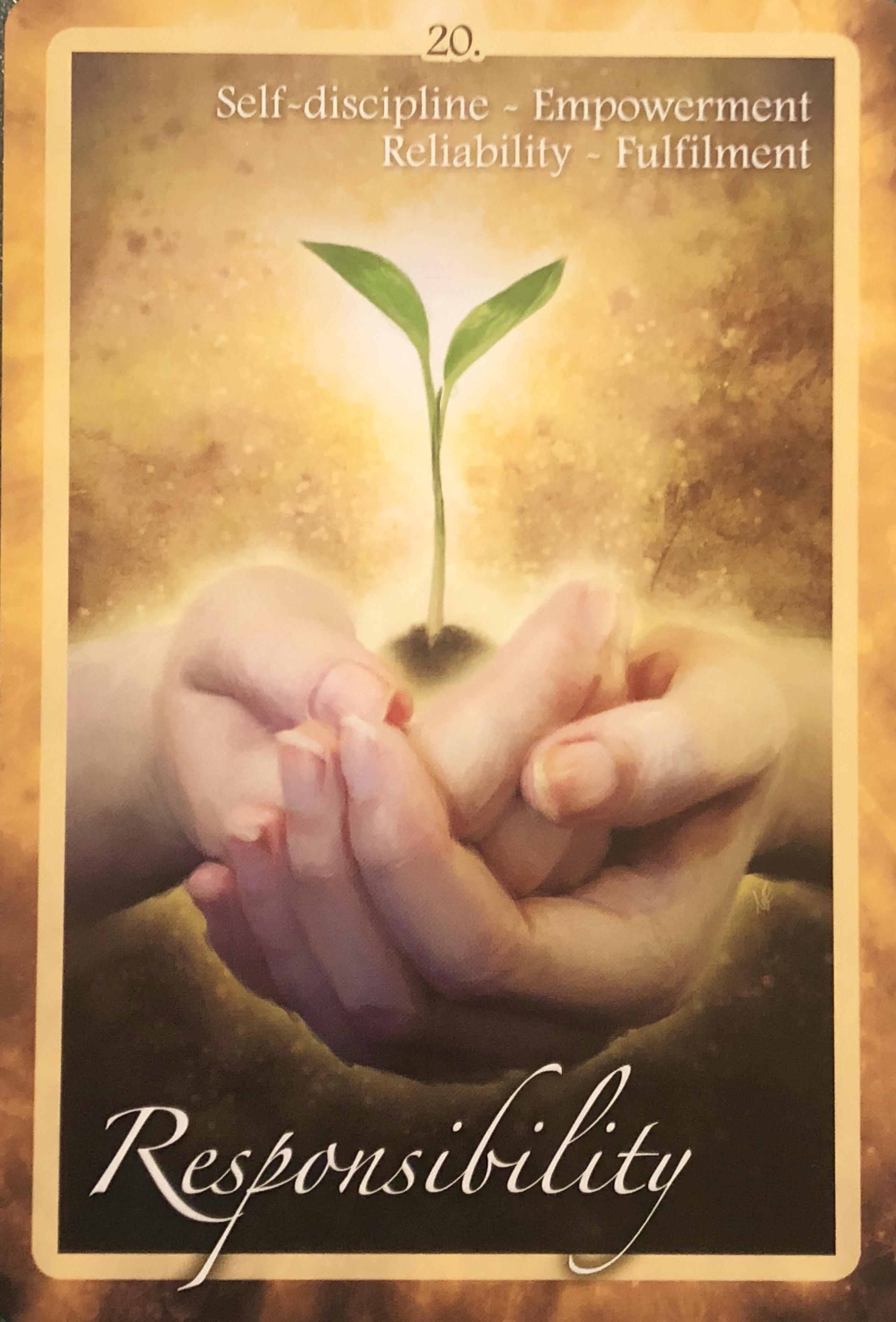 age: “Responsibilities and self-discipline are vital in creating all the things we want in life, from a healthy body and mind, though to a successful career and happy relationships. This card is an invitation to smile at the opportunity to fulfill your responsibilities.