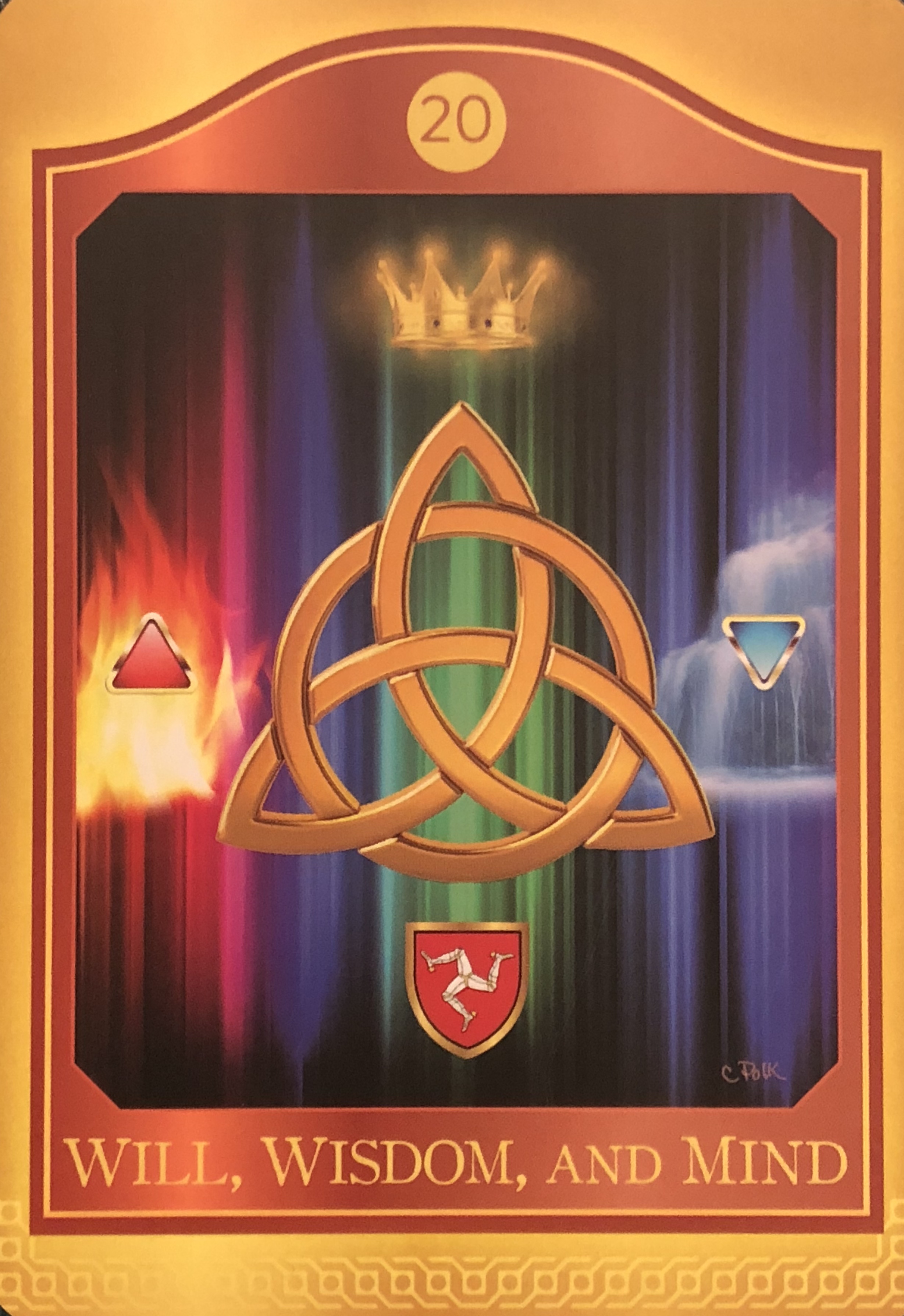 Nonetheless, the Coat of Arms of the Isle of Man flies high, sharing its message that however you land, you will stand – even in these difficult times. So take a step back and do not try to fight the forces at hand. Get out of your head and do what you can to reconnect with your higher guides. Your outer influence may be diminished right now because your crown has been toppled. But your strength and authority have now become the foundation upon which to build anew. You can bring mental, emotional, and physical balance back to your life by working with the exquisite and powerful energies depicted in this card. The more you become aware of these forces within you, the sooner the right flow of energy will return.”