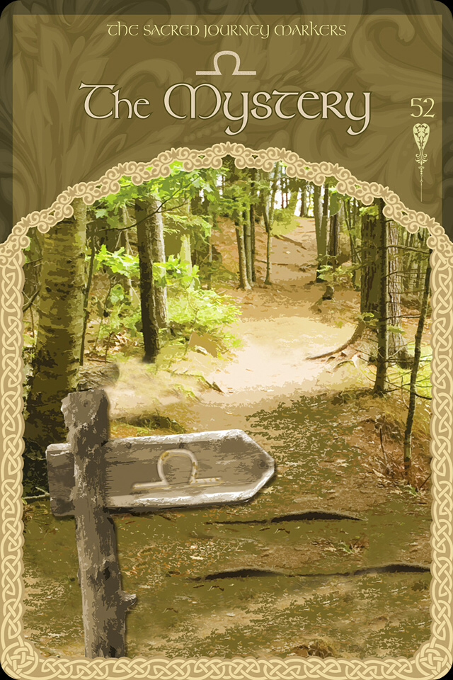 “This marker directs you into the unknowable Mystery of your journey. It is the sacred place where all things are created but are not yet formed. It points the way to pure power and potential, which meets the magic of intention. It tells you that the magical unknowable forces of destiny and fate are working in your life. The forces that you can never fully understand or control are, indeed, weaving their magic around you to help you to fulfill your true purpose.