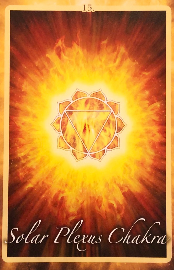 Card Message: “Located between our navel and sternum, our Solar Plexus is truly the ‘sun center’ of our being. It is the energetic home base of our self-esteem, will power and individuality. When we speak about standing in our power, we speak of feeling centered, strong and resilient within the core of our Solar Plexus.