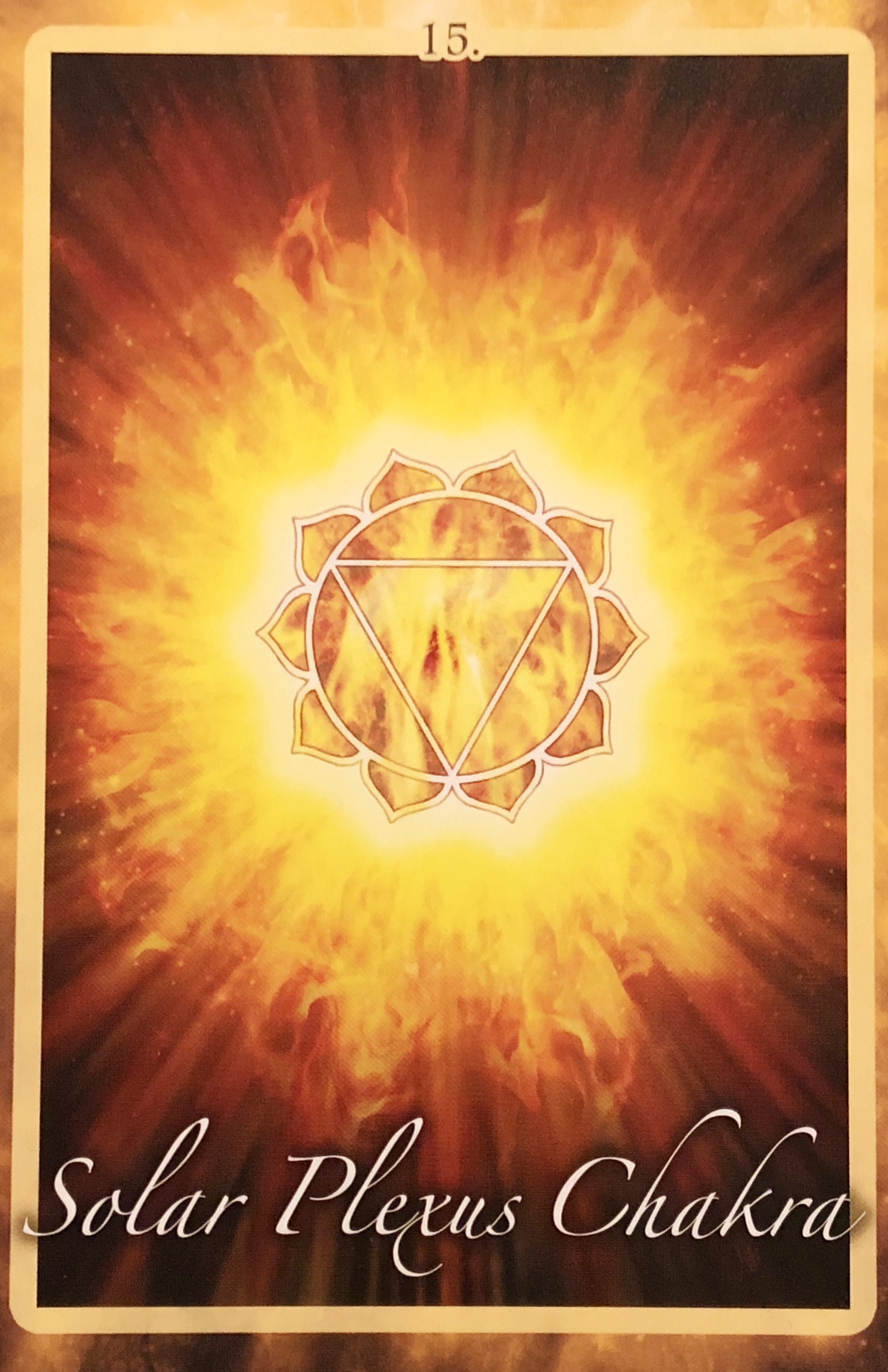 Card Message: “Located between our navel and sternum, our Solar Plexus is truly the ‘sun center’ of our being. It is the energetic home base of our self-esteem, will power and individuality. When we speak about standing in our power, we speak of feeling centered, strong and resilient within the core of our Solar Plexus.