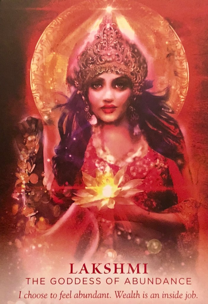When Your Soul Selects Her Card: “Abundance looks different to each of us. Some people have incalculable material wealth but are bereft of a sense of purpose or a greater vision for their life and so are left feeling lost. While others are considered poor in financial wealth but walk around radiating love and the kind of light that has an inestimable worth. Lakshmi is the auspiciousness that begins to bloom in our life when we align our every action with the work our soul has come here to do.