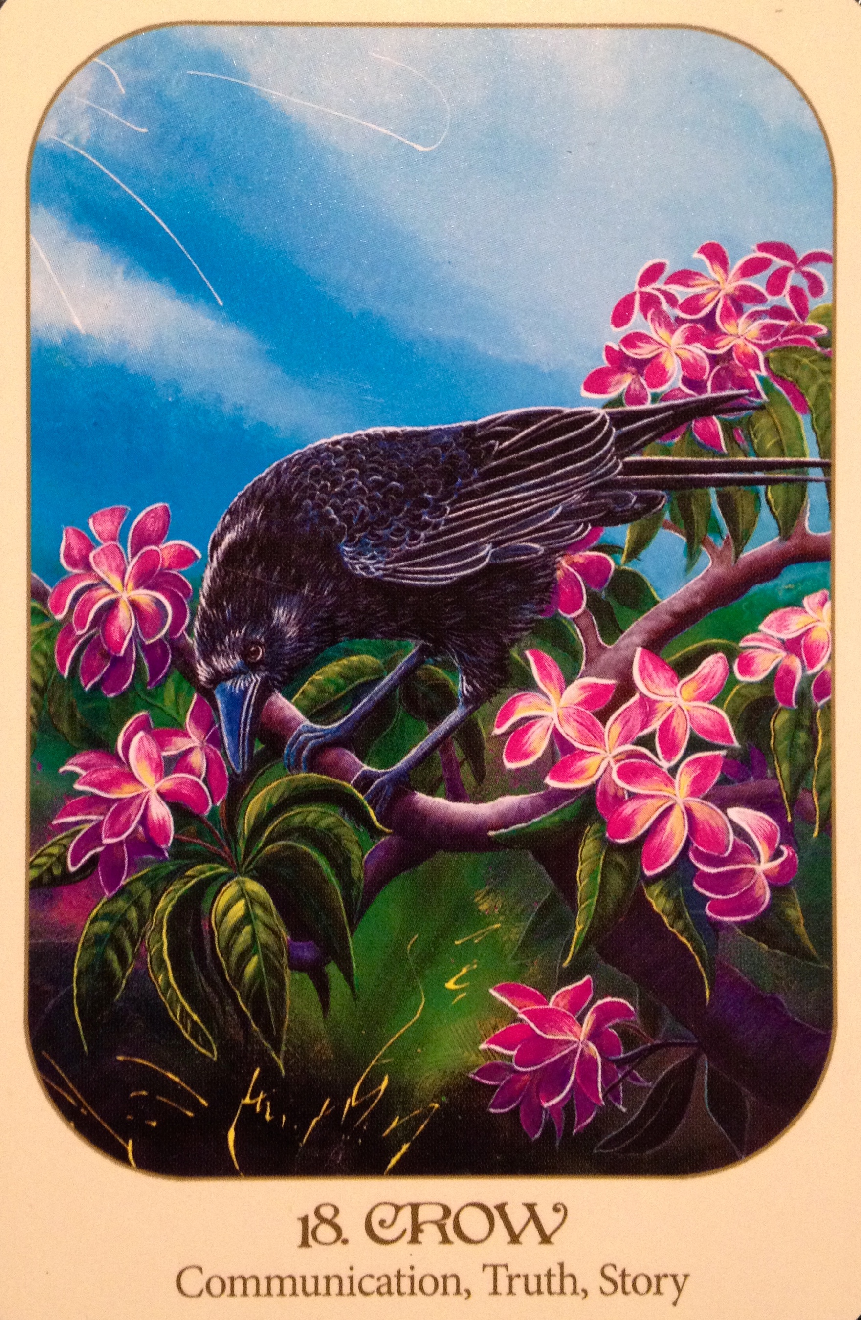 The Message From Crow: “Crow is the protector and the messenger of your unique story in life. When he visits you, he comes to help you move from one life “chapter” to another. He stands at the doorway and asks you what you have learned and why you are ready to begin something new. He asks you what is the purpose of your new journey? What do you really want? Do not be scared. Crow asks you these things with a smile because he knows this is a special time and he has come to help you celebrate what you have achieved so far and to help light the way for what is next! Welcome!