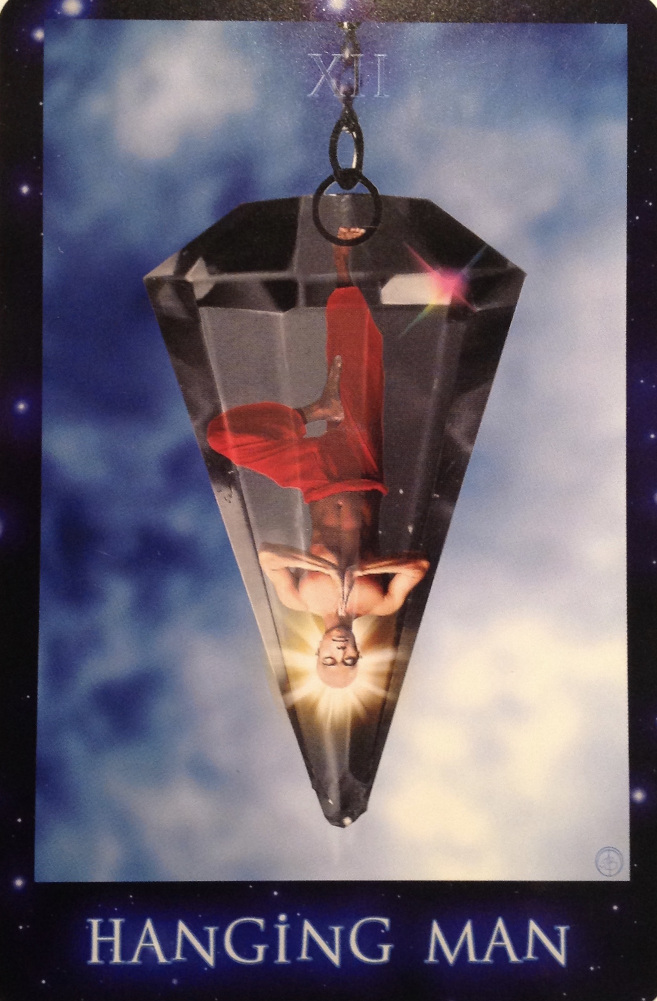 Hanging Man: “Like a pre-born infant in the womb, reversing itself to prepare for passage out of the state of suspended animation of one world and into the next, Hanging Man is observing reality from an inverted perspective. He is the stilled pendulum, at rest: a potential energy disengaged, floating, meditating, surrendering.