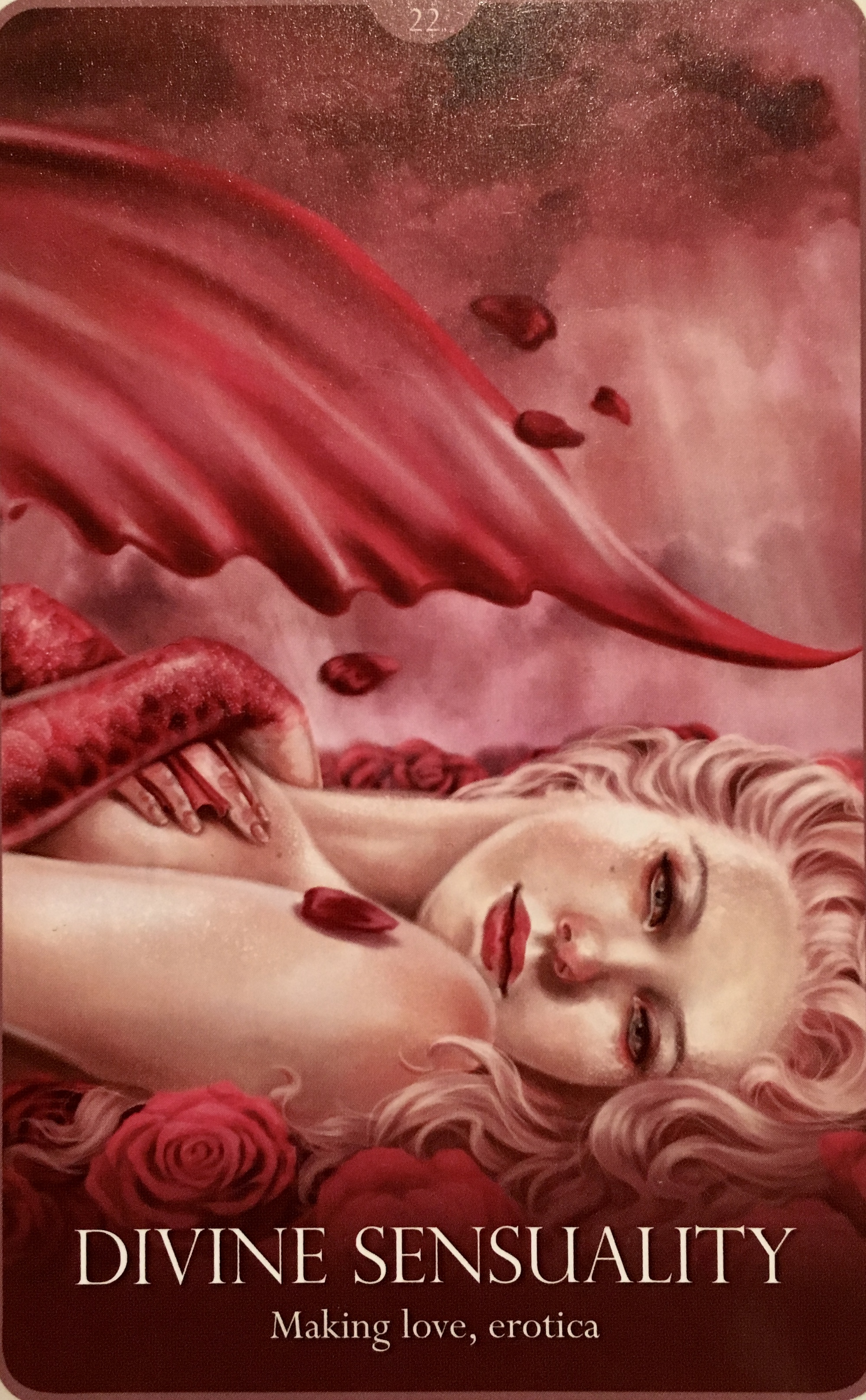 If you have drawn this card it is likely you are ready to explore and dive into your own physical expression of bliss: it may be through making love with a cared-for other, achieving greater intimacy in your relationships, or even experiencing blissful sensual moments while receiving a massage or dancing… but this card encourages you to reconnect with the love of your natural physicality, and to explore the pleasure your sensuality can bring to you, and to begin to understand and untangle any of the lingering cultural or personal guilt you may have about this. There are man beliefs many taboos too: that women who enjoy sexual feelings and evoke them in others are impure, courting danger, threatening to themselves and to other women, and dangerous to men. But the truth is, we all have a seductress within us, a mermaid-like being who dwells within our psyche and subconscious, who is able to show us how to pleasure ourselves and others, and how healing this sacred sensuality is and can be.”