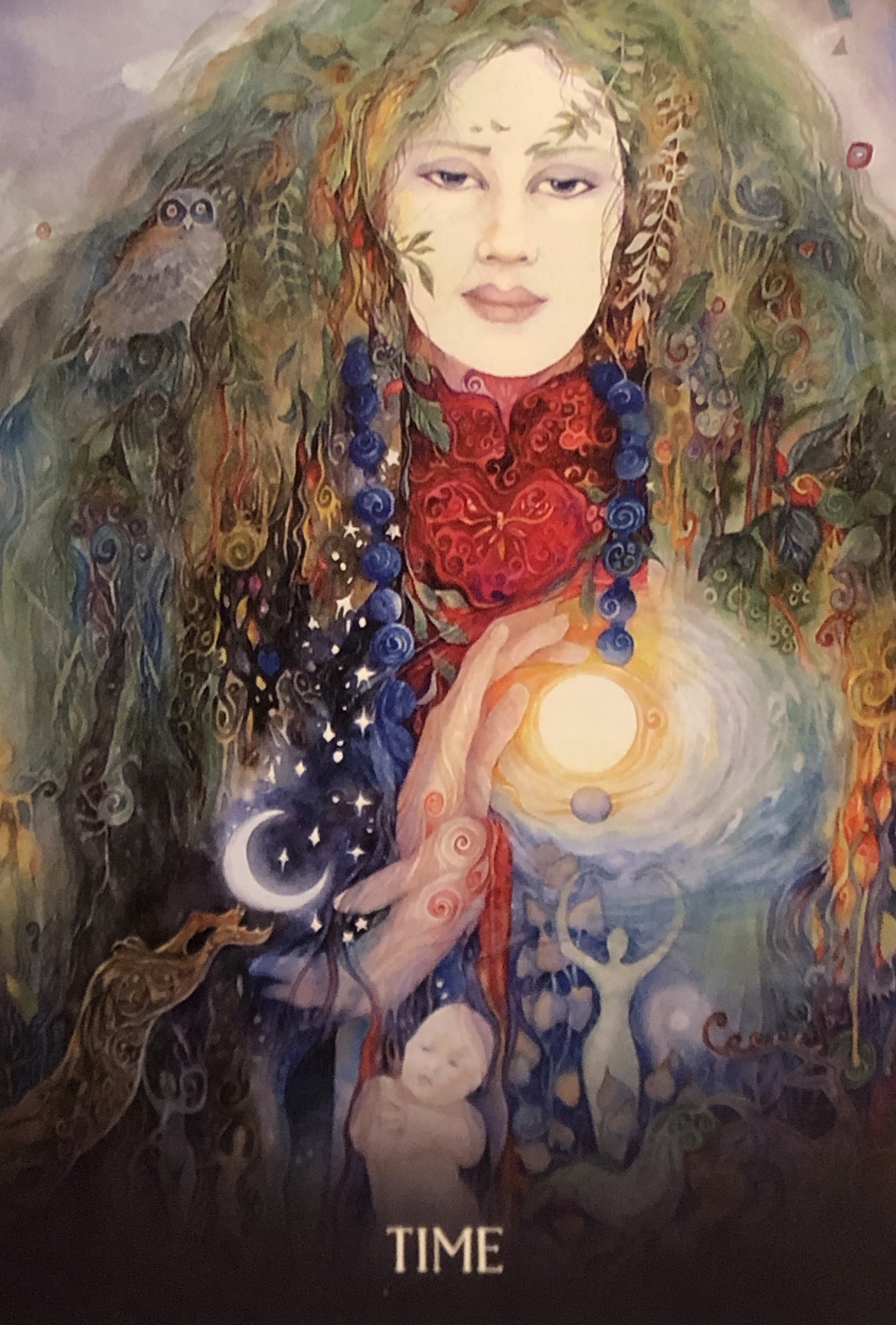 Daily Angel Oracle Card: Time, from the Sacred Earth Oracle card deck, by Toni Carmine Salerno, Leela J. Williams, and Helena Nelson-Reed. Published by Blue Angel